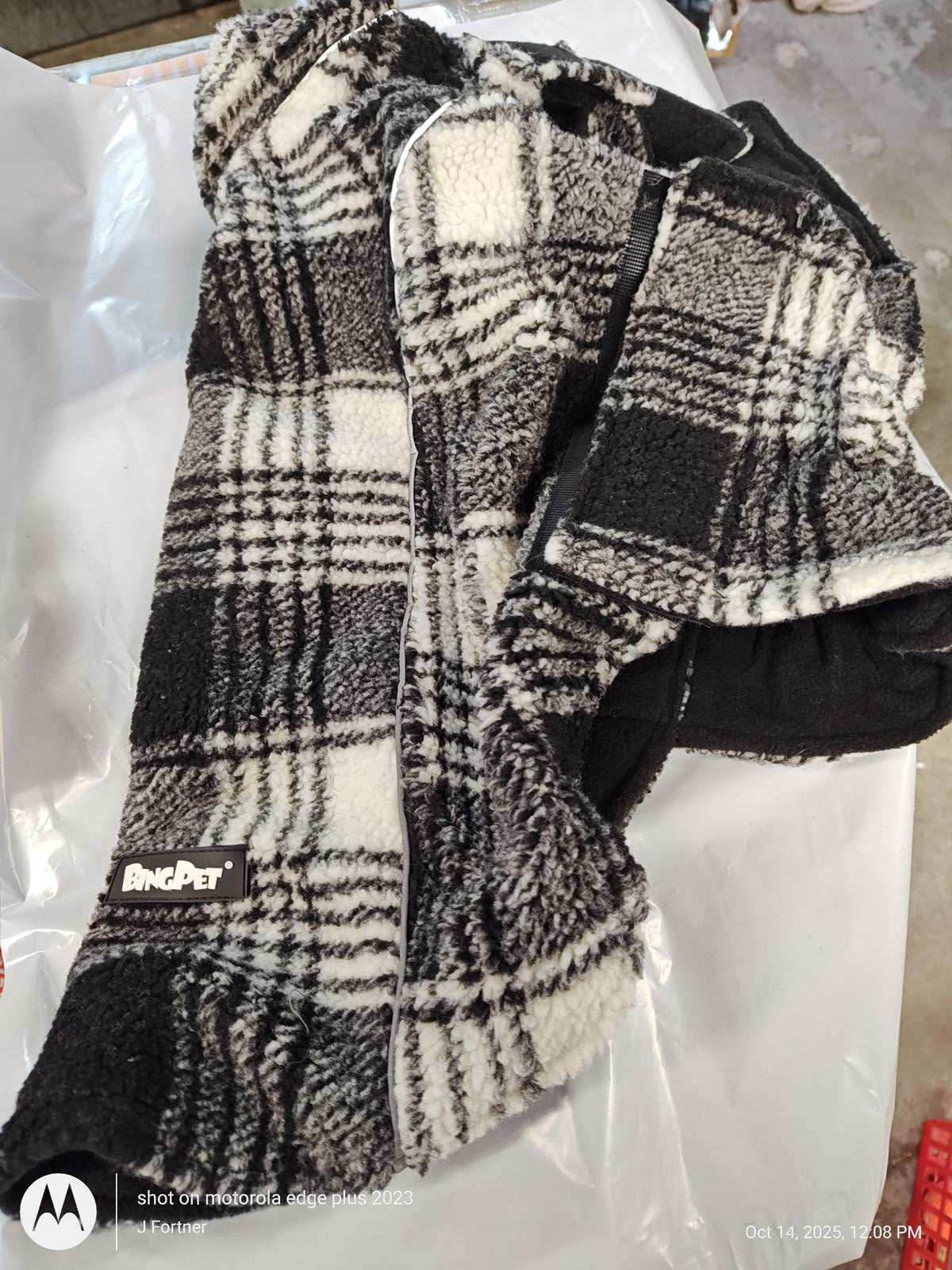Bing Pet Dog Faux Lamb Plaid Reversible Adjustable Size L Coat Dog Jacket Dog