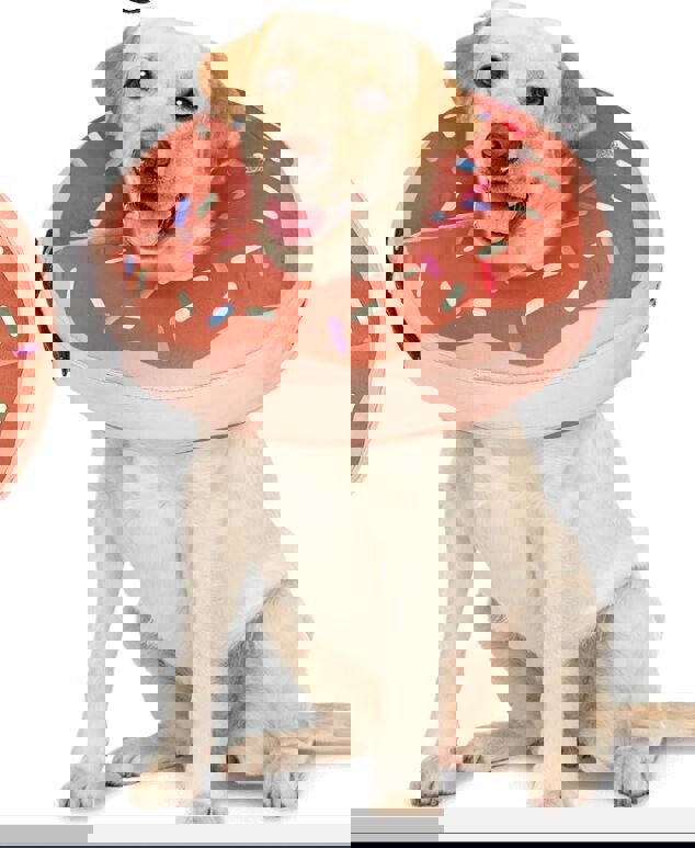 Introducing the Dog Cone Alternative, a specially designed product for large or giant breeds , who have undergone surgery OR CHEWING AT HOT SPOTS. This soft and interactive cone is an excellent addition to your pet's recovery routine. Its unique design allows for easy attachment to your pet's collar, and its durable material ensures long-lasting use. Just air up and use This Dog Cone Alternative is perfect for any dog owner looking for a reliable and comfortable cone for their furry friend. and fun donut with sprinkles look is fun and stores away super easy and small