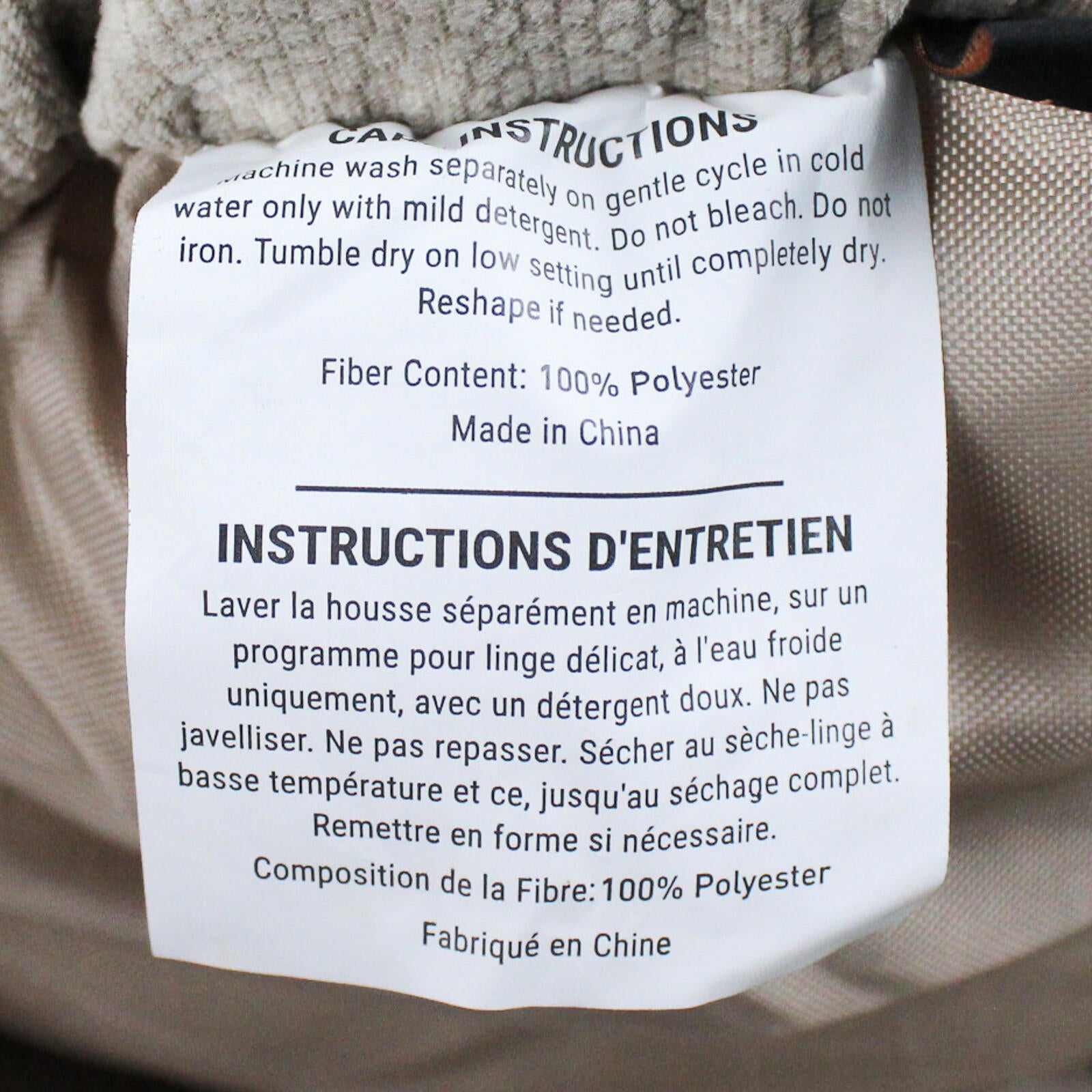 Fit for a cat or small dog, measuring 18" exterior circumference and 15" interior. Made of 100% polyester, this bed is machine washable.