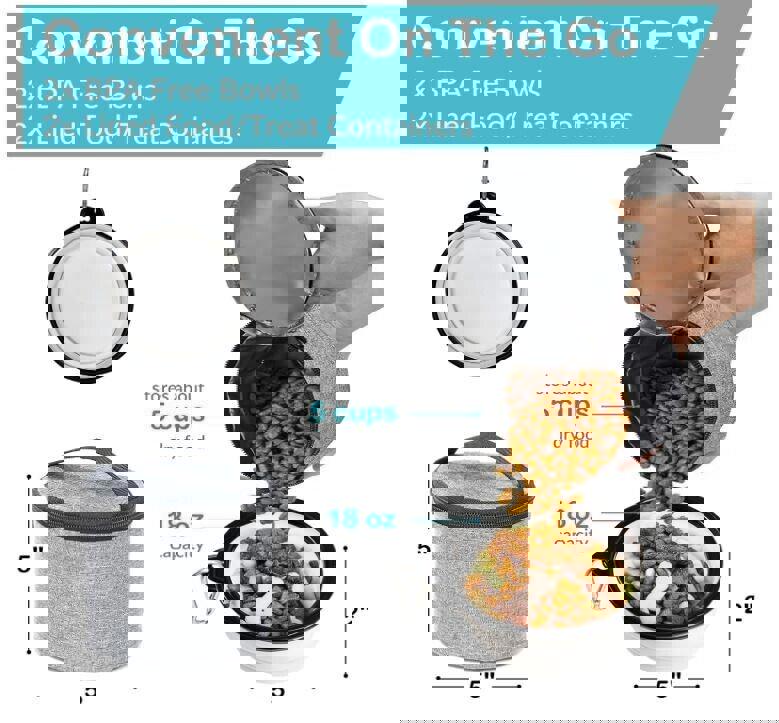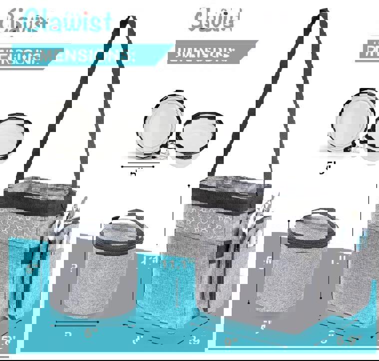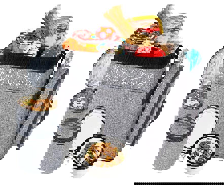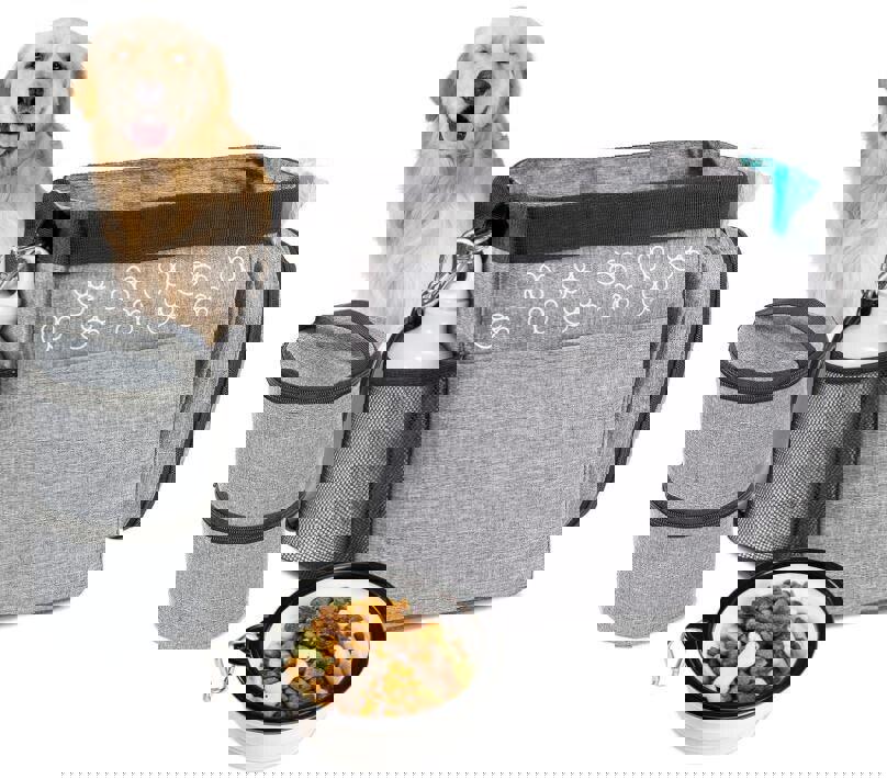 Dog Travel Bag for Supplies - Includes Travel Bag, Travel Dog Bowls, Food Grey