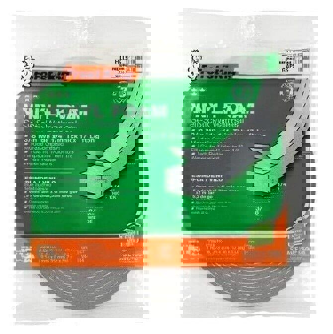 Frost King Vinyl Foam Tape - Closed Cell - Moderate Compression, 3/8" W, 3/16" Thick, 17' L, Grey