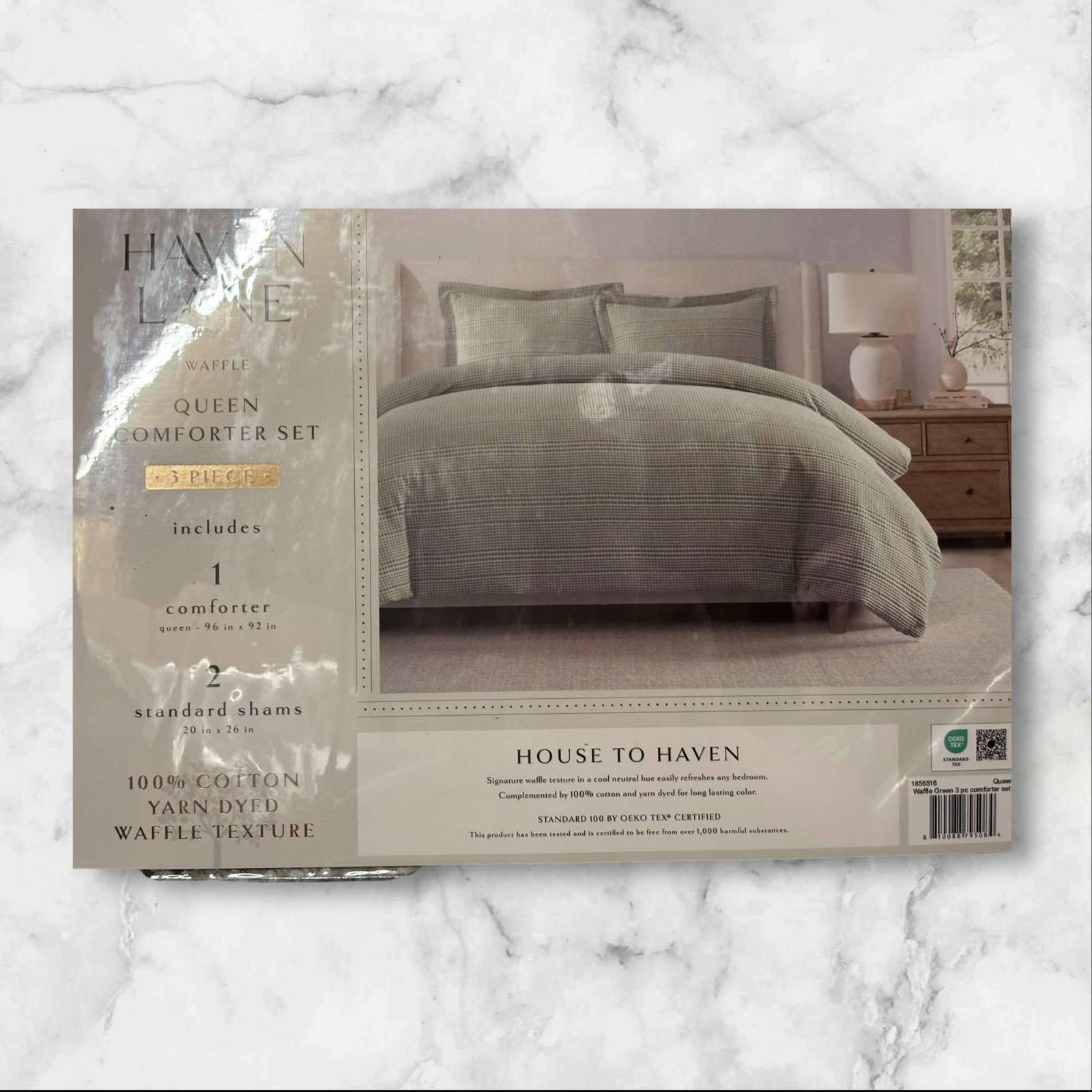 HAVEN LANE Waffle Queen Green 3 piece COMFORTER SET- FREE MAGIC BAG