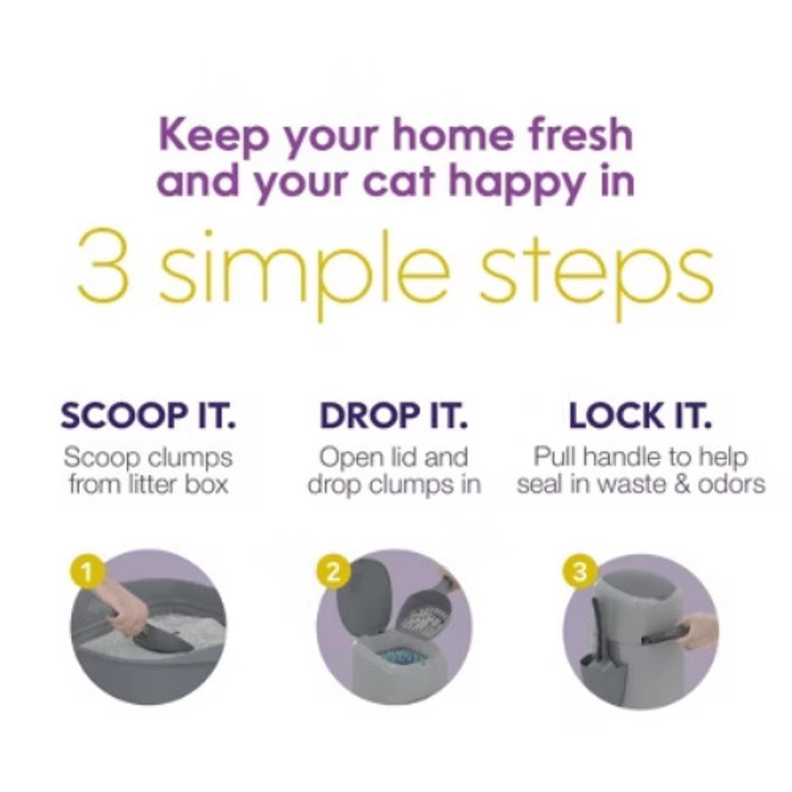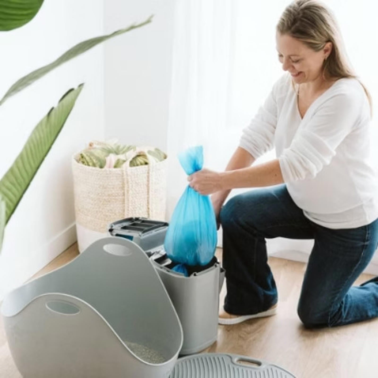 Enjoy a fresher home with the Litter Genie Design Pail, the ultimate solution for hassle-free cat litter disposal. This compact gray cat litter pail, made from 98% recycled plastic, holds up to 14 days of soiled litter for 1 cat, reducing the need for daily trips to the trash. The included scoop and scoop holder add convenience, while the system’s user-friendly design allows for easy disposal in just 3 simple steps. Made from a multi-layer film with odor-locking barrier technology, our Litter Genie refill bags help prevent odors from escaping.