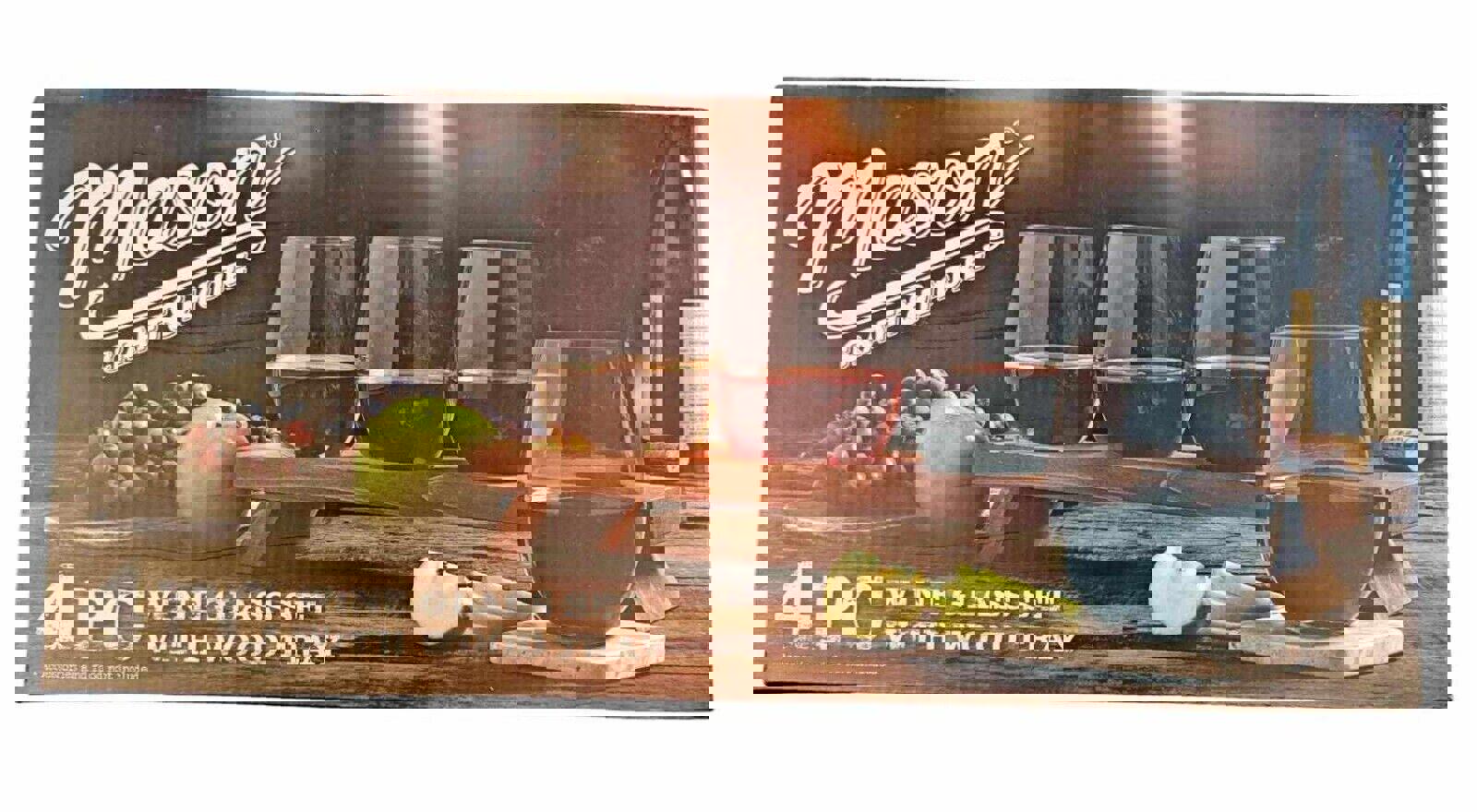 Mason Craft & More 4 Piece Wine 19oz Glass Set with Wood Tray New in Box