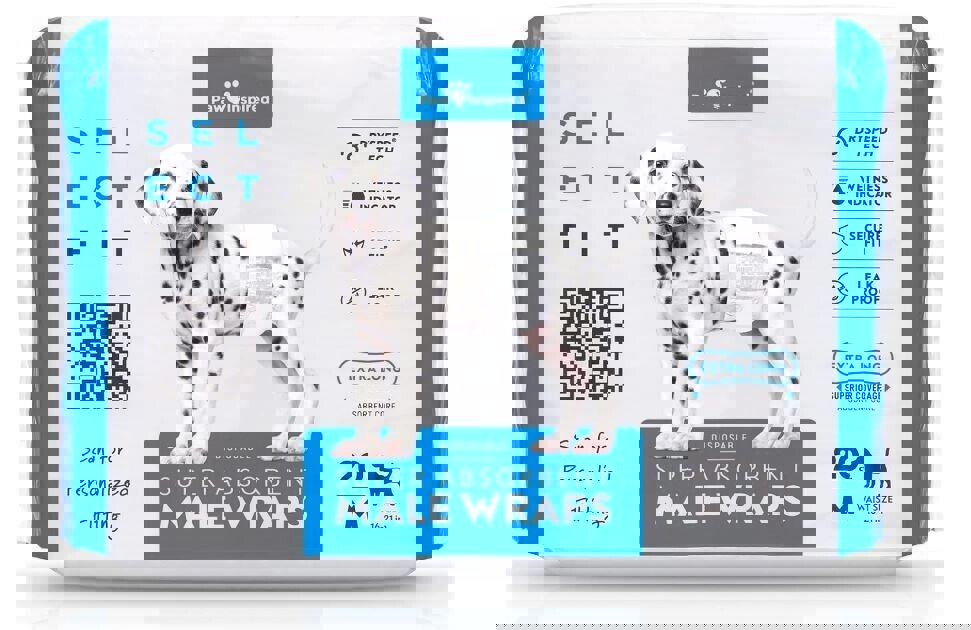 This Paw Inspired Select Fit Disposable Male Wrap is an ideal solution for male dogs who need a belly band. The white color and puppy life stage make it perfect for those who want to keep their pet looking stylish and comfortable. The band is made from high-quality materials and is designed to fit male dogs of size M. The belly band is perfect for dogs who need extra support while walking or running. It is easy to use and dispose of, making it a convenient option for pet owners who want to keep their surroundings clean. This product is a must-have for any dog owner who wants to keep their pet comfortable and secure while on walks. Paw Inspired Select Fit Disposable Male Wrap | Belly Band for Male Dogs with Extended Absorbent Core and Wetness Indicator (Medium, 20 Count)