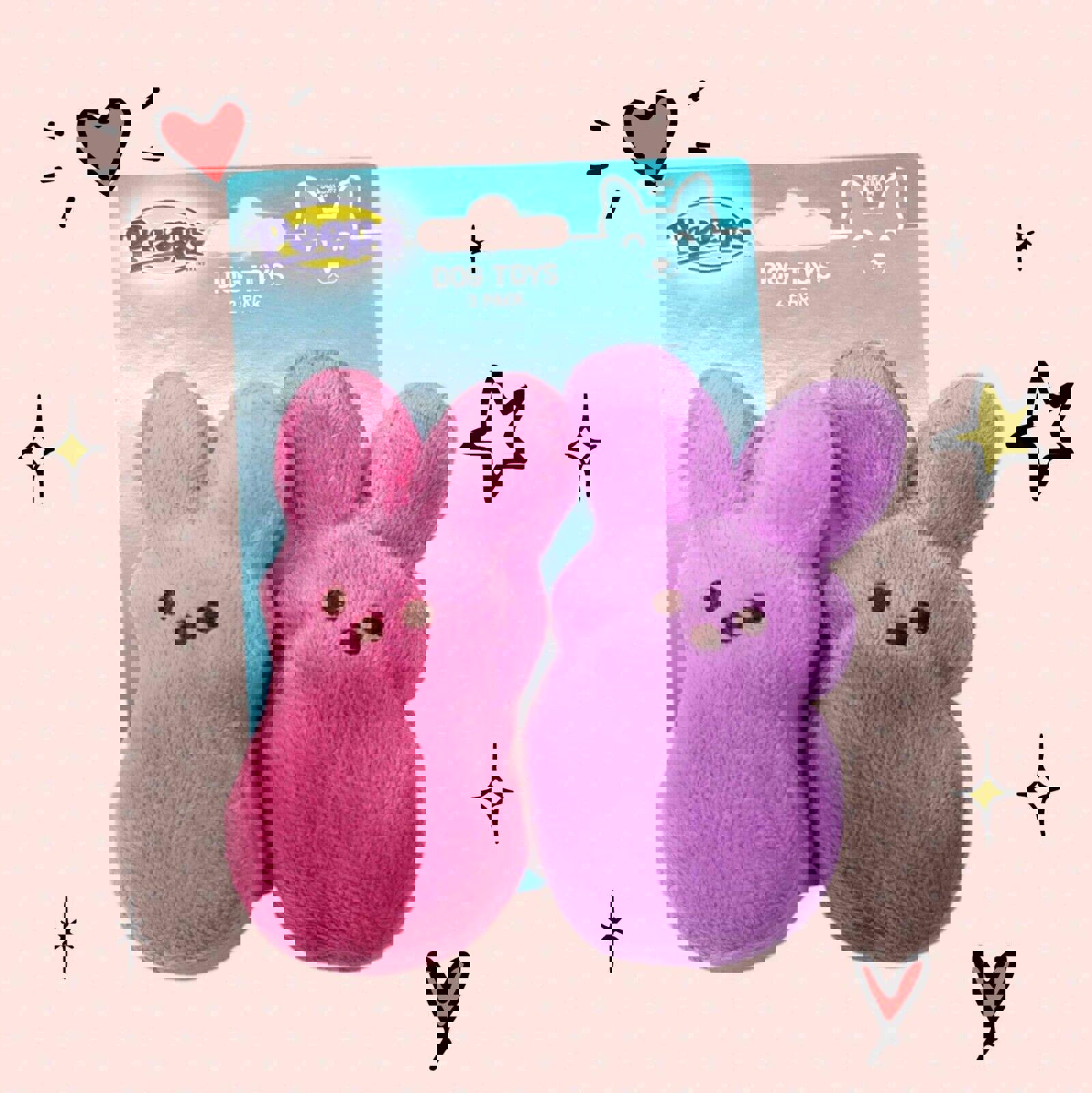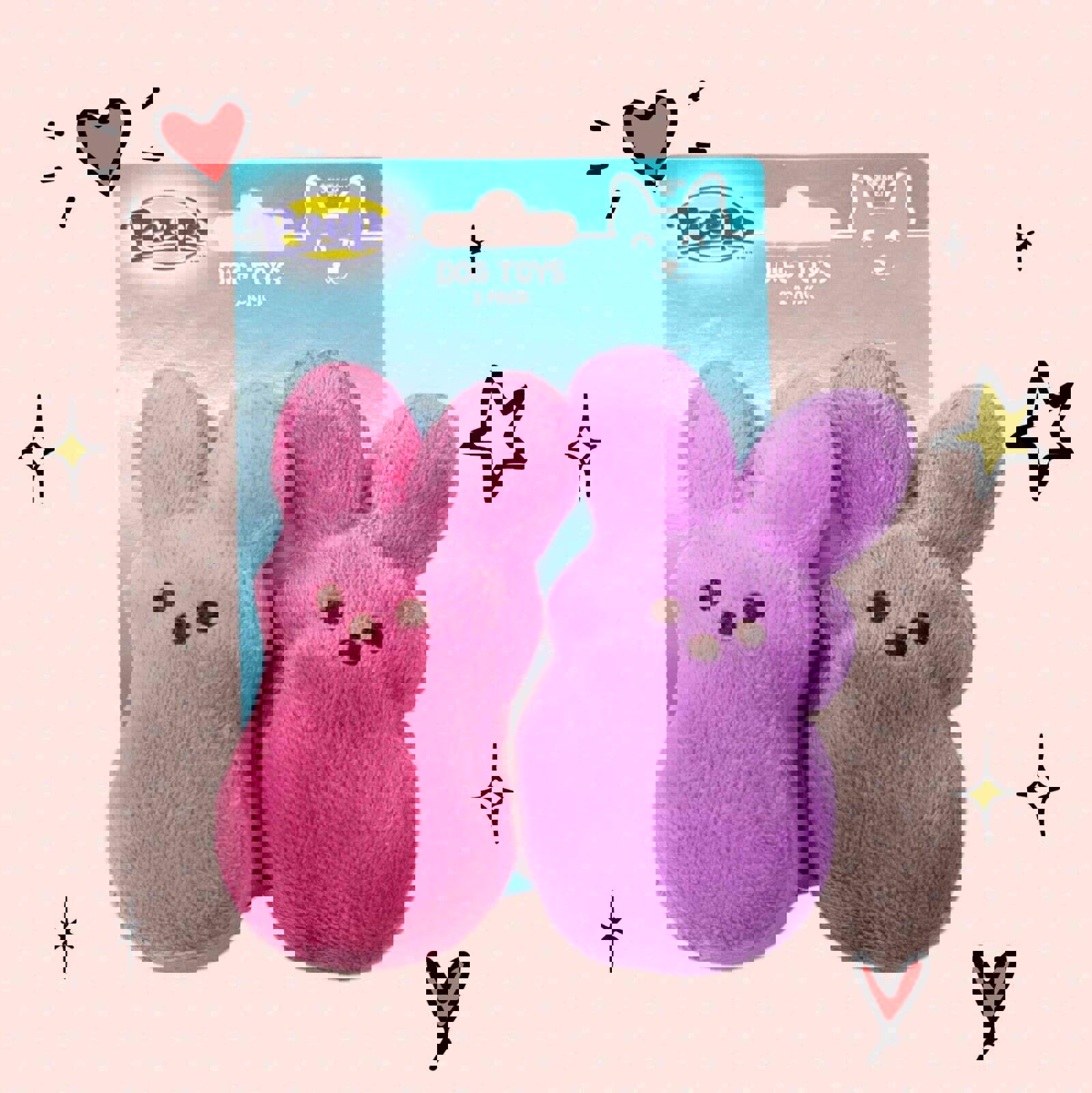 Peeps for Pets Pink & Purple Plush Bunny Squeaky Small Toy 4" 2 Pack Set NEW