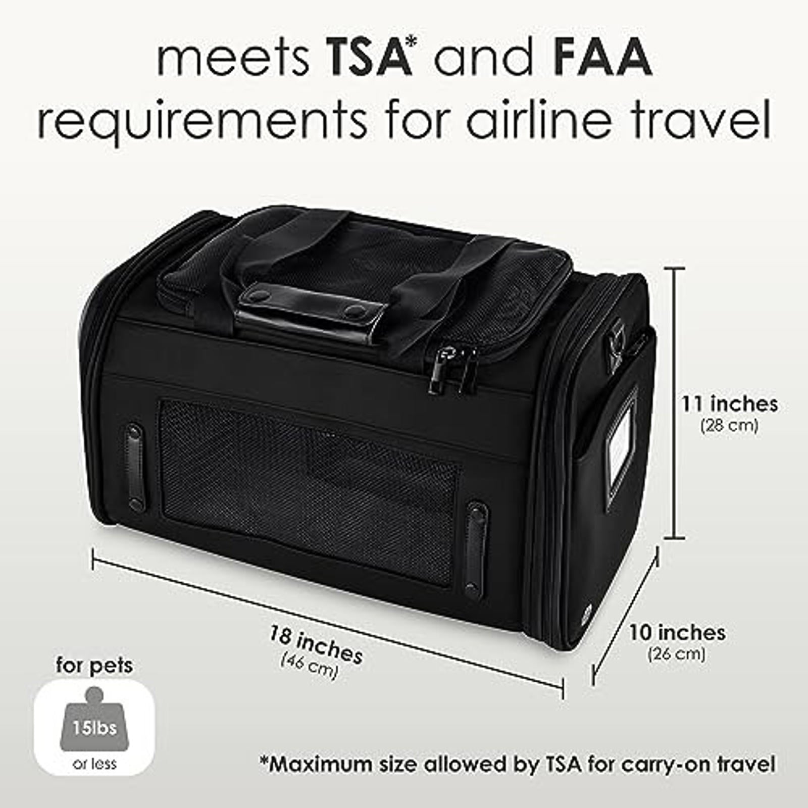 Certified airline approved: the pet carrier is certified FAA, TSA and IATA compliant so you can easily bring it onboard with you during air travel. With multiple zipper openings, an adjustable shoulder strap, as well as side pockets for treats or accessories Brand New Never Used Wonderful new leather